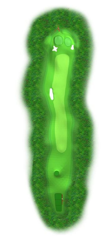 페어웨이가 넓고 살짝 내리막 홀이라 부담은 적으나 좌측에 연못이 있어 티샷은 우측으로 공략하는 게 좋습니다. 2단 그린으로 핀 위치에 따라 정확한 세컨샷이 요구됩니다.